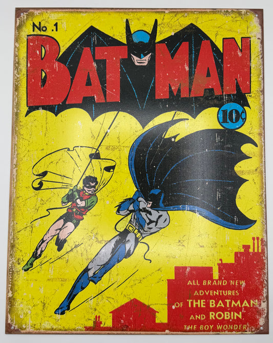 Pay homage to the Dark Knight’s legendary beginnings with this iconic Batman #1 tin sign....