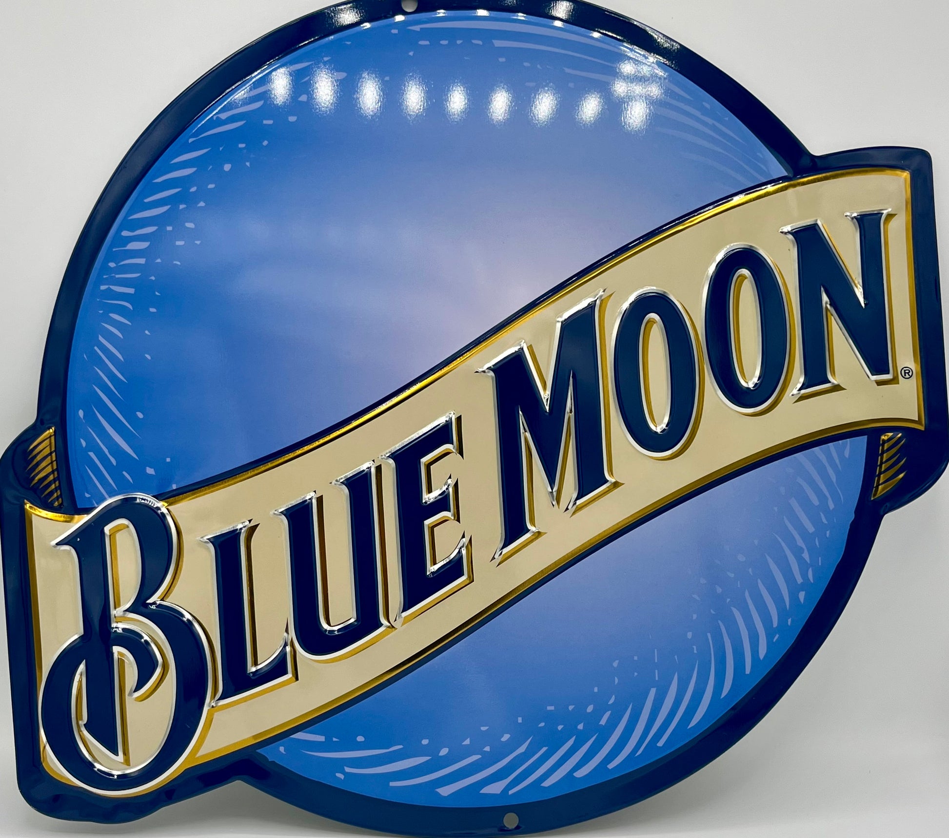 Add a touch of craft beer charm to your décor with this Blue Moon Embossed Metal Sign. Featuring the iconic Blue Moon logo across a bold, deep-blue circular background, this sign perfectly captures the smooth, refreshing vibe of the popular Belgian-style wheat ale. The raised embossed lettering and detailed finish give it a crisp, premium look that stands out on any wall.